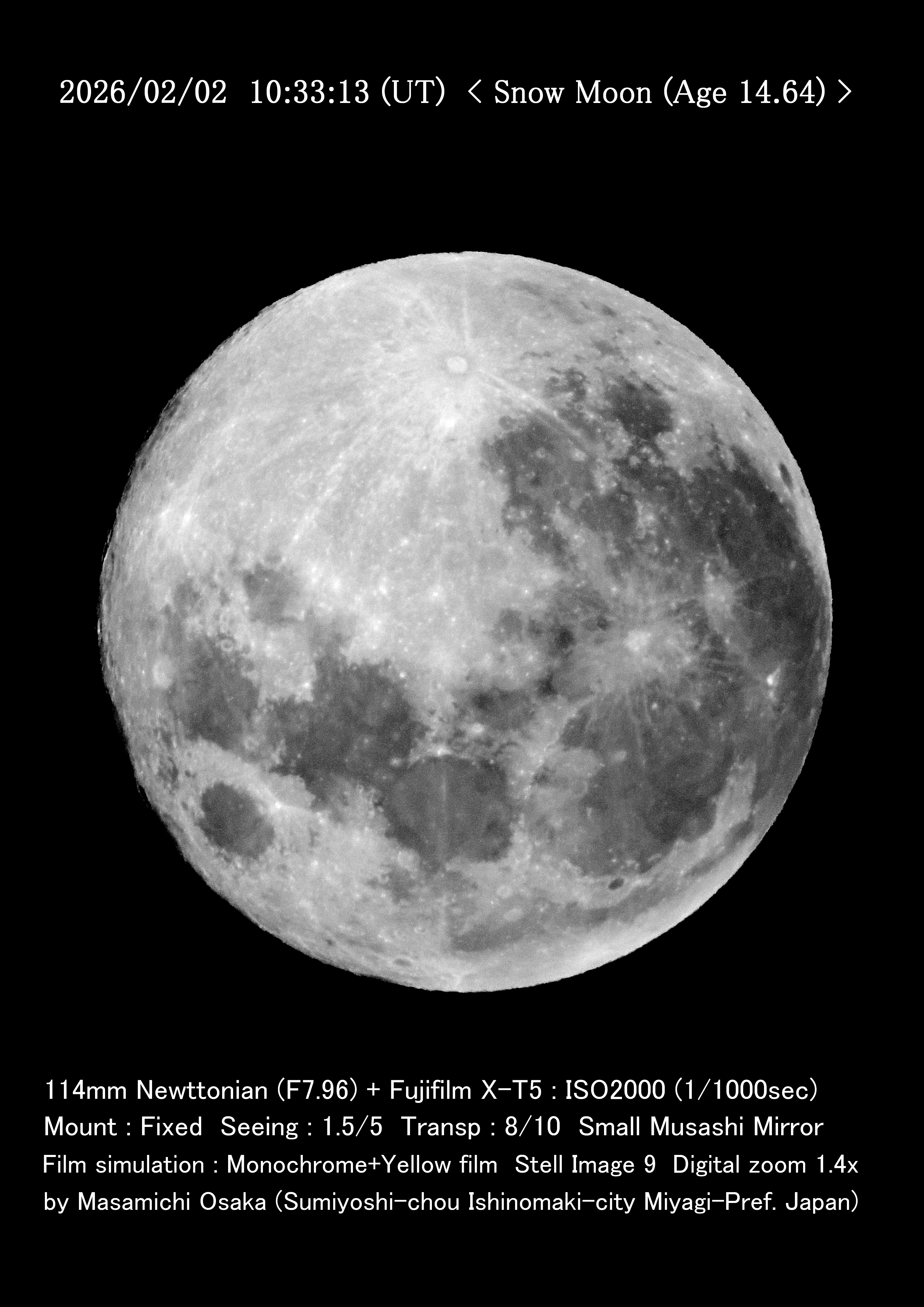 こんばんは。天気予報通りに晴れて雲が切れたので、撮影しました。 勿論、冬の空なのでシーイングは悪くなっていましたので、処理にはきついものがありました。寒いです |